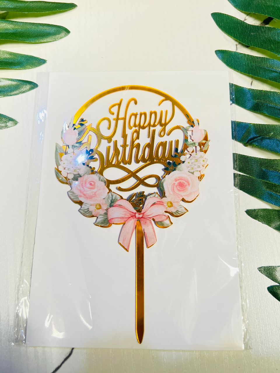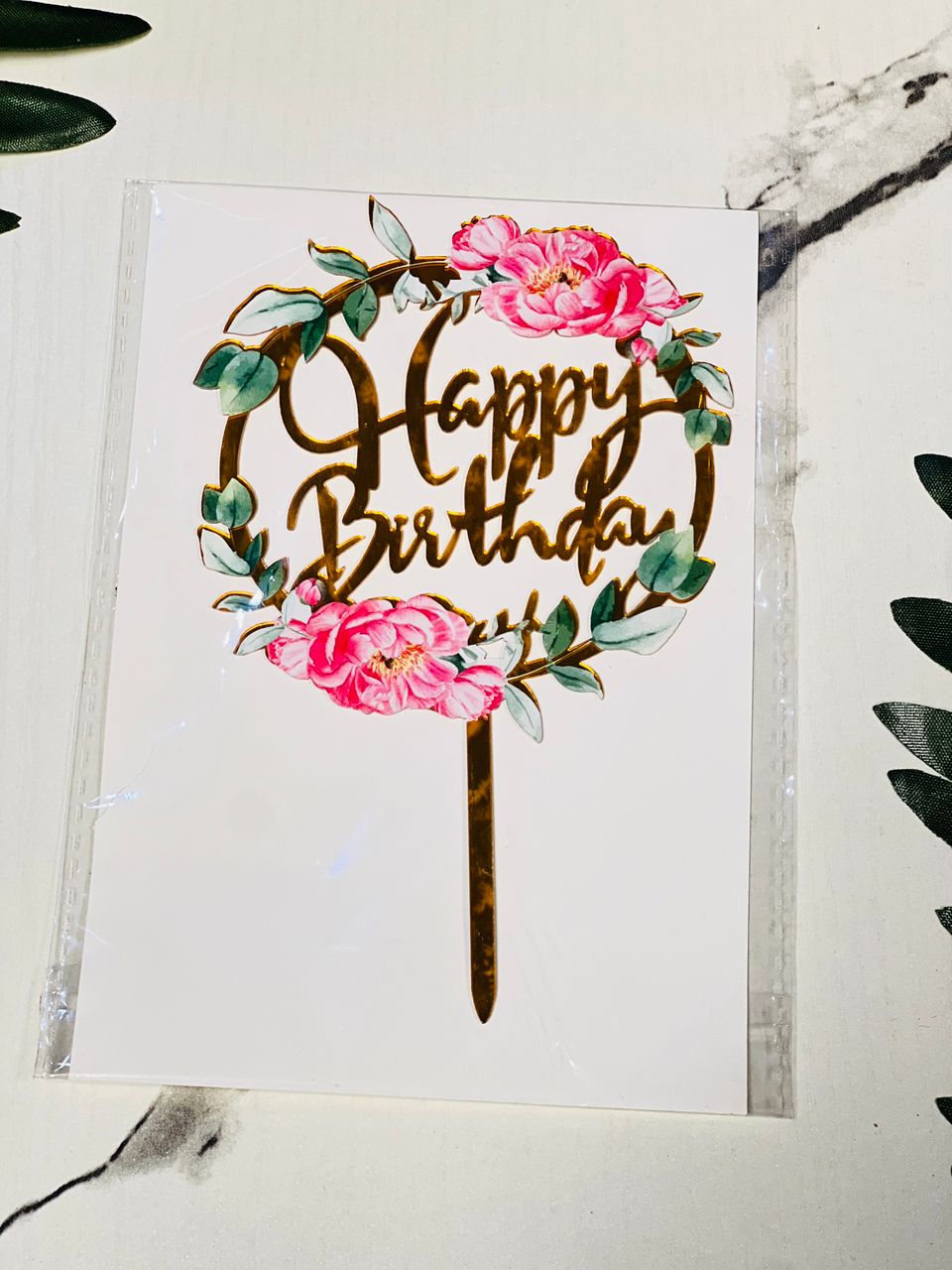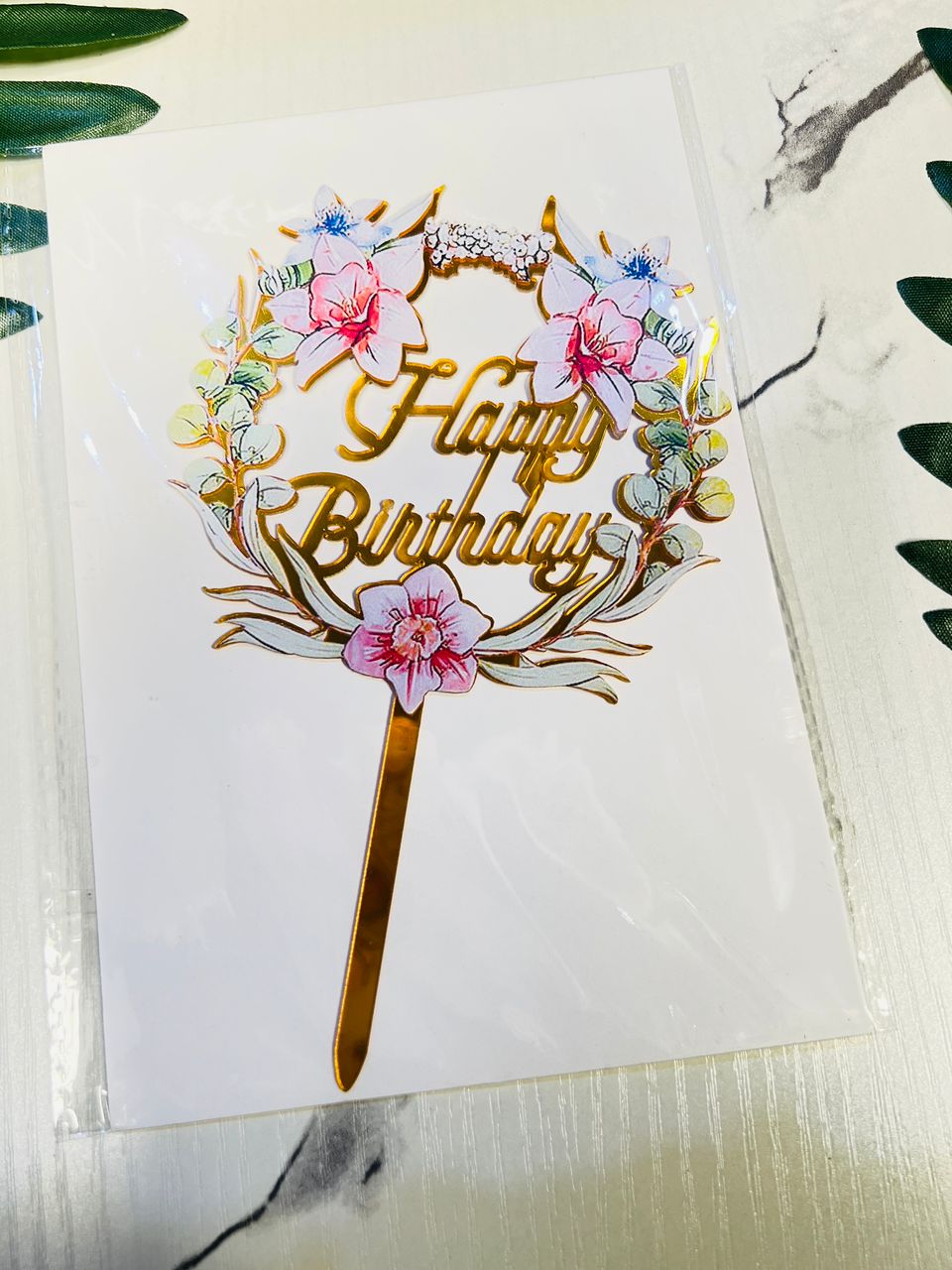 Acrylic Flower Happy Birthday Toppers – 6inches